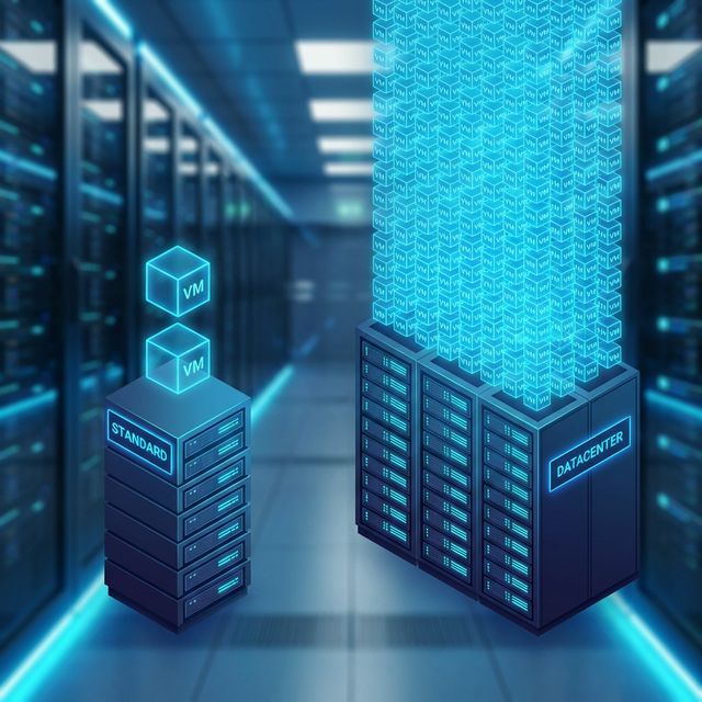* The Logic: If you plan to run more than 10-12 VMs on a single physical host, Datacenter is cheaper. If you run fewer than 10, stacking Standard licenses saves money.